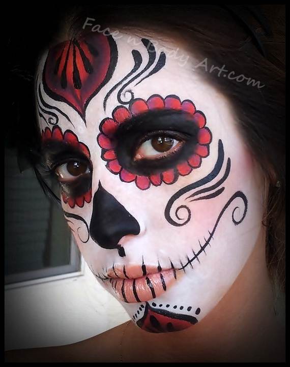 50 Halloween Best Calaveras Makeup Sugar Skull Ideas for Women… Halloween is the perfect time opportunity to be creative. Makeup is what gives Halloween costume a real supper effect. One of the most traditional, yet totally creative and cool Halloween makeup looks which was inspired by the Mexican Day of the Dead is the sugar skull makeup…A perfect mixture of spooky and sweet.