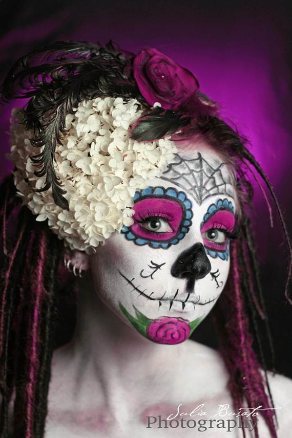 We have put together some really pretty and scary Halloween Best Calaveras Makeup Sugar Skull ideas for Women from pintrest. With so many color options take your favorite, the only limit is your imagination and try to create a unique look. Be daring, edgy and creative on this day, have a chance to appreciate Sugar Skulls or Día de los Muertos celebrations as you do to Halloween by this will you have no chance to rest!