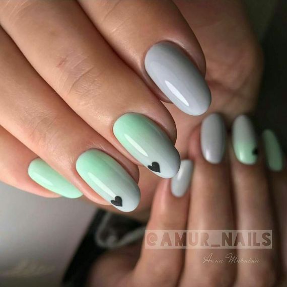 If you will be doing a monochromatic manicure, then remember that this latest nail trend allows you to pick many Monochromatic manicure, using many shades from the same color family while using the Negative Space Nail Art technique too. Both are now popular. (the Negative Space Nail Art technique design of nails is to leave a little space not covered with gel polish). The process to apply the polish on all nails the same as the traditional manicure and an unpainted the heart-shaped area remains on one or two nails.