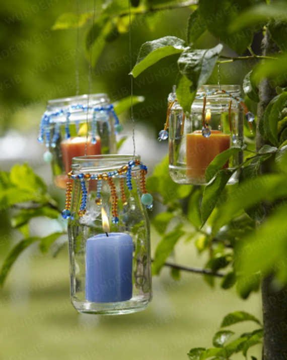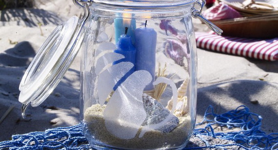 An awesome simple decorating idea for an illuminating effect and to make candles perfect decorative element is to place candles in large mason jars, jars of jam, cans of canning or glass candle holders. And other simple but clever designer trick is decorating candle jars with ribbon to give an outstanding look.
