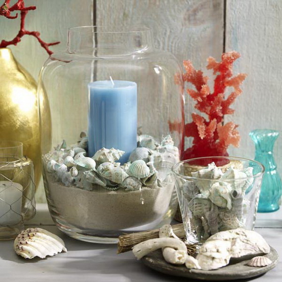 Candle holders are great when it comes to decorating…A single tall candle placed in the middle of stones and flowers will give an excellent touch to the candle arrangement your living room. You can use more than one Mason jar or glass candle holders with different colors or sizes to spruce up your home.
