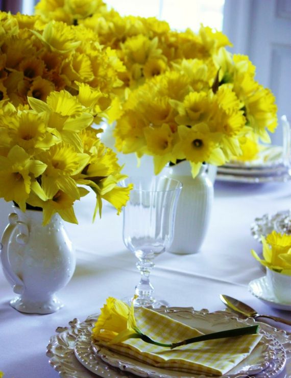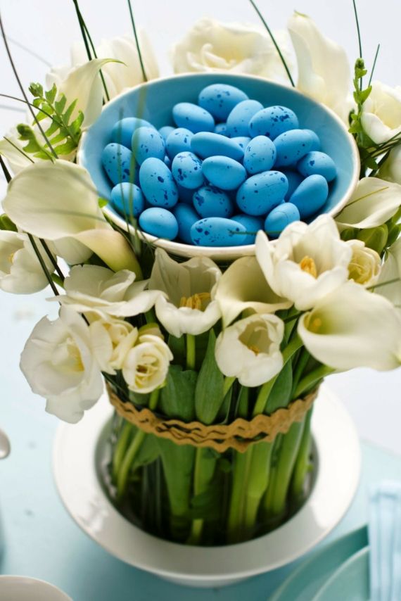Easter is a holly holiday should be respected. It is not wise to use your old washed tablecloths on a bare table. Easter is not a holiday when lack of textiles can be placed by any two plates and hearty snacks. If you don’t have a special festive tablecloth, immediately buy the most beautiful, most luxurious dining table cover ever. A crispy linen tablecloth, solemnity in each fold, festivity and beauty covering your Easter table and even when hidden to the next year. Easter tablecloth is festival and an elegant Easter decoration itself…cannot be replaced by anything. It is also wise to have napkins that matches the Easter tablecloth. paper handkerchiefs are not acceptable. It is only acceptable for children’s table. Ribbons look very beautiful on the Easter table, there are pretty ways to decorate with ribbon for Easter on your Easter table. They can be used to tie cutlery, tie a luxurious bow to decorate a vase neck, or just decorate your eggs with them.