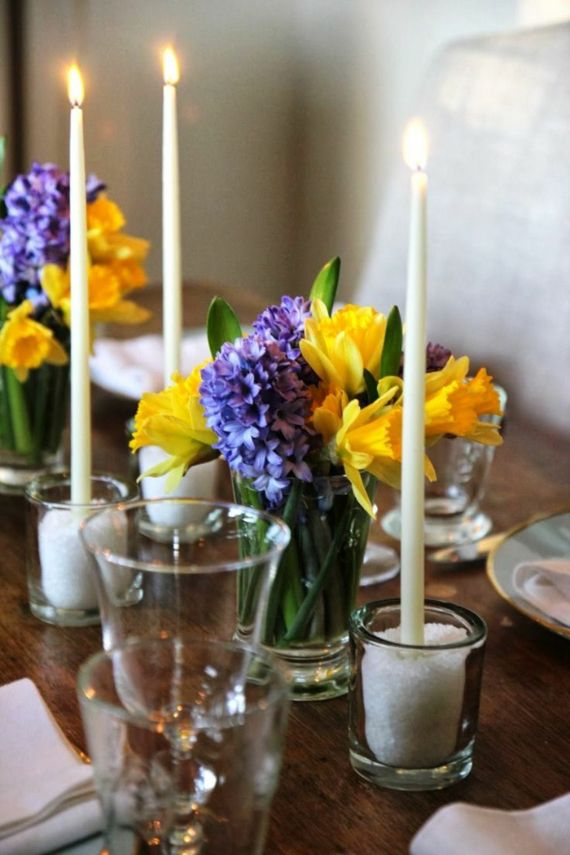 Easter candles and candlesticks look especially solemn on Easter table, giving a wonderful decor for the Easter table. Easter candles and candlesticks are often made in the shape of eggs or crafted wax is poured in the shell of the egg. Whatever their size is big or small, tall or short, when neatly placed among the plates or table. As a rule, they look much more interesting than one grandiose one in the center of the Easter table. At the same time, do not put assortments of all kinds and shapes of candle and candlesticks you have. Candles and candle accessories should be selected that goes with the same composition of your Easter table in accordance with the general style and theme of the rest of the table.