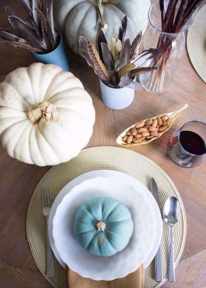 Blue Pumpkin Centerpiece adds a touch of freshness to the whole décor.
