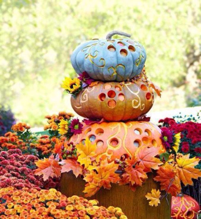 Pumpkins are ideal for fall décor on the whole: they span the season from September through Thanksgiving. Pumpkins in various colors and sizes with other natural elements such as leaves, and more make an amazing Centerpiece and glorious Fall Décor.