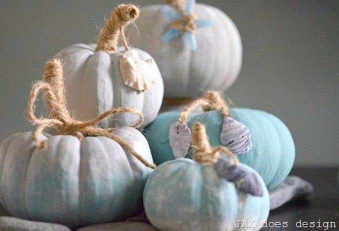 Blue pumpkins with all the shades of light blue bring the coastal, beach and nautical theme to your Fall decor showing the spirit of the blue sea water very well. You can just put the blue pumpkins mixed with a dark navy blue pumpkins sea shells, Sea grass, candles, flowers, branches and whatever you like to create a nautical oceanic fall theme.