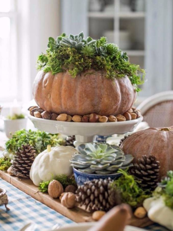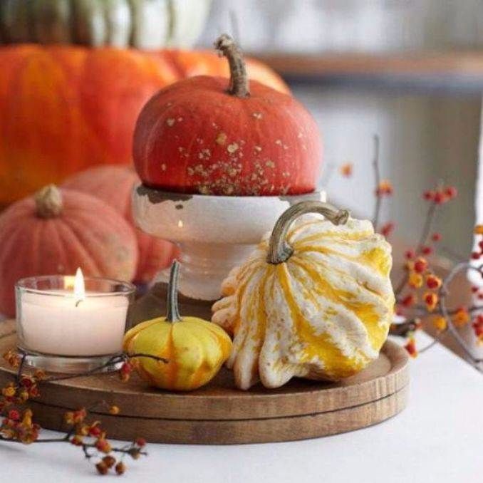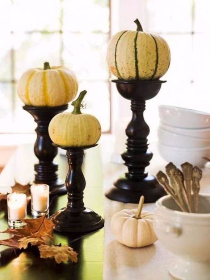 A centerpiece décor used with incorporating natural elements- mainly pumpkins- on your dining table can make you feel comfortable and increases the festive feel of the occasions coming.