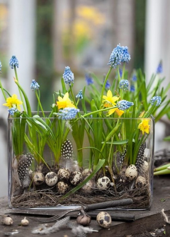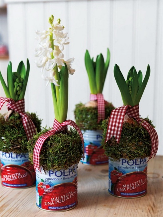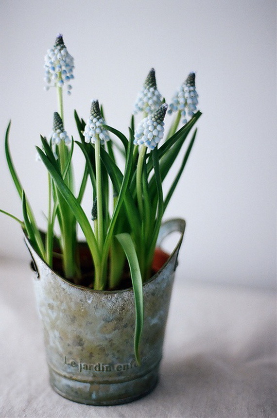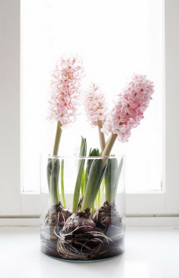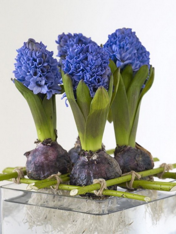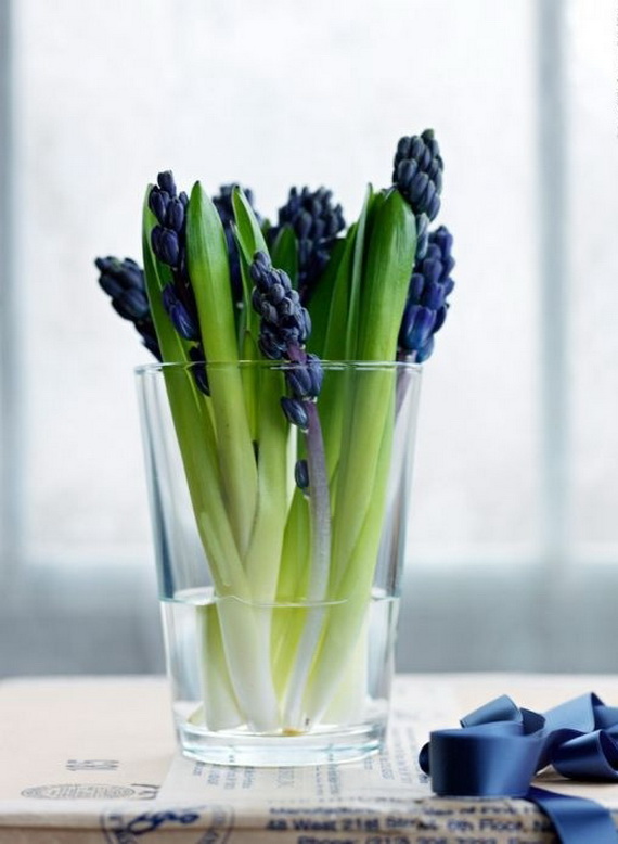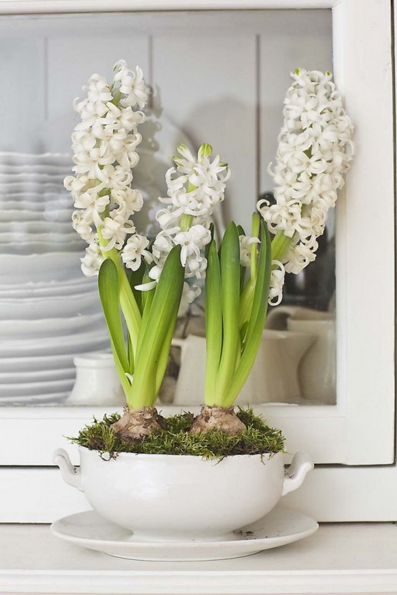 The hyacinth is a fabulous spring flower ideal for a spring centerpiece, any table or party would be greatly decorated with them! Their delicate colors bring spring atmosphere into your home and shine with elegance spring colors. Hyacinth brings spring from outside into inside and used for the interior as decoration for the coming Easter and spring. Check out these wonderful ideas from wunderweb and get inspired by the colorful spring blossoms on how to use the hyacinth as a spring decoration.