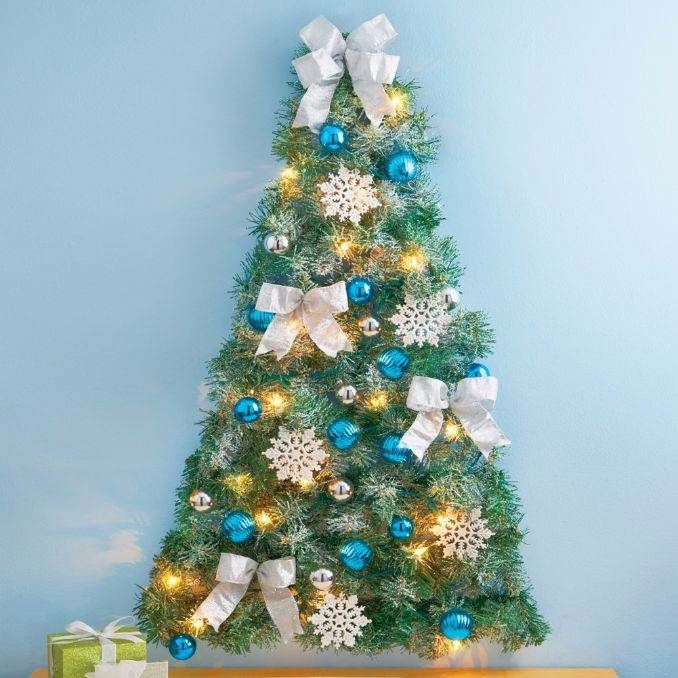 A new half wall Christmas tree for wall is such a good idea. It appears to be a real one with bushy and full form from the front. There is no need to decorate the back which is stickled to the wall because no one will ever see it.
