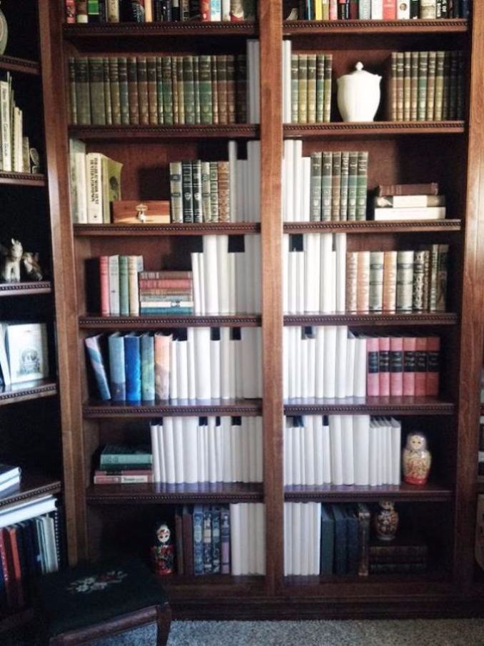 Or instead you can cover just a few of your shielded books to make your library like a Christmas tree…A Christmas holiday shape on your bookshelf!