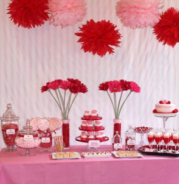 Red color shades, pink and purple colors, and their combination are the symbols of the day; these colors bring love, romance and passion into your special day decor.