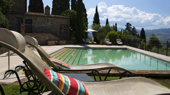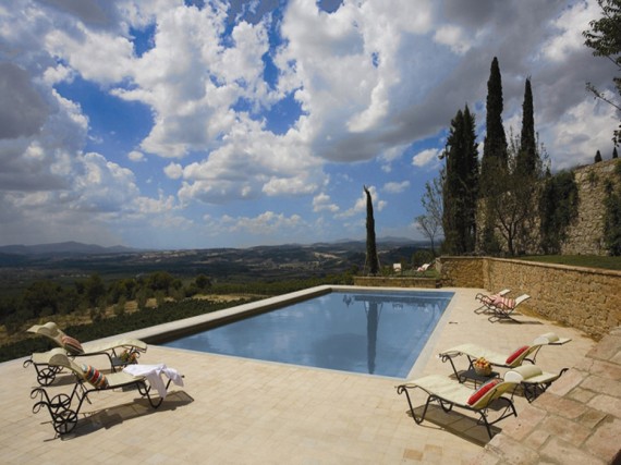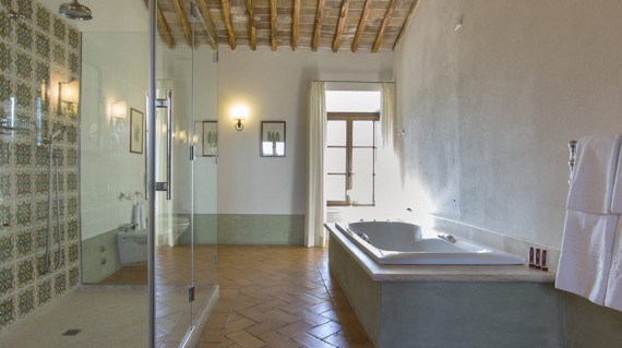 The roomy accommodations provide breathtaking views of the surrounding countryside, including expansive views of the far-off vineyards, olive orchards, and undulating hills.