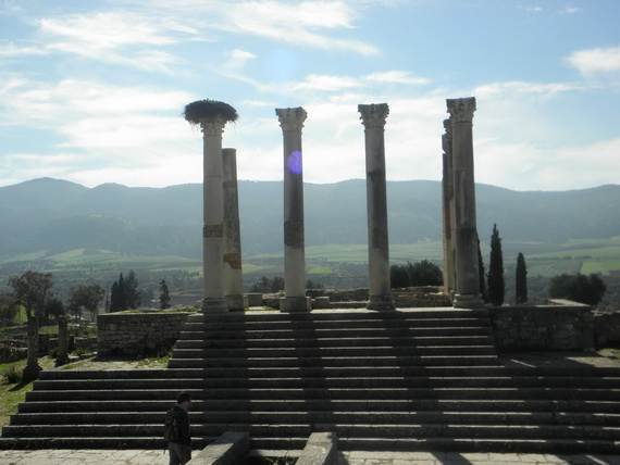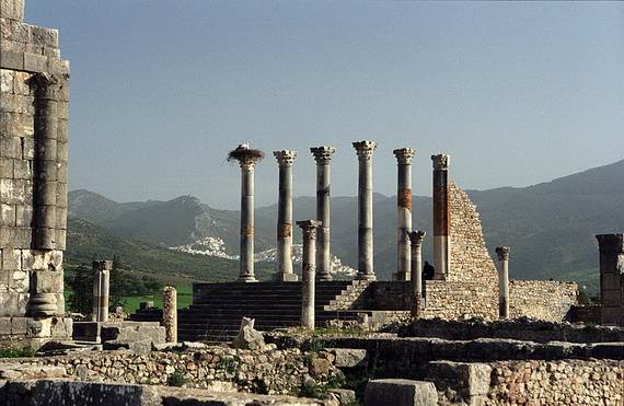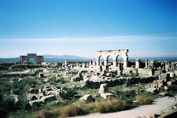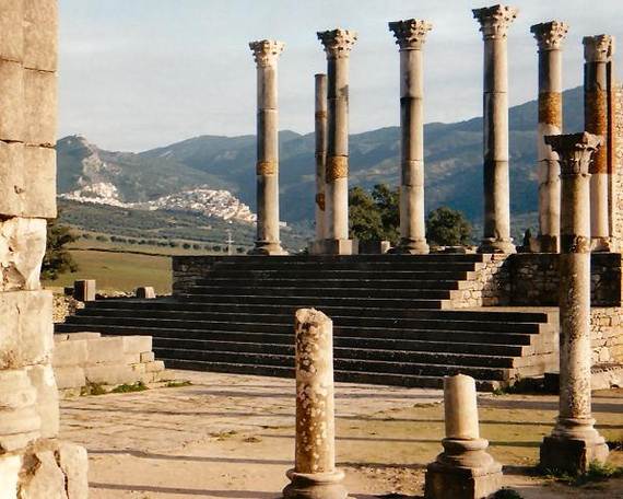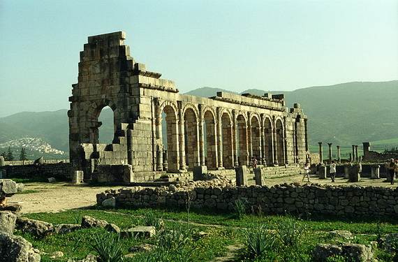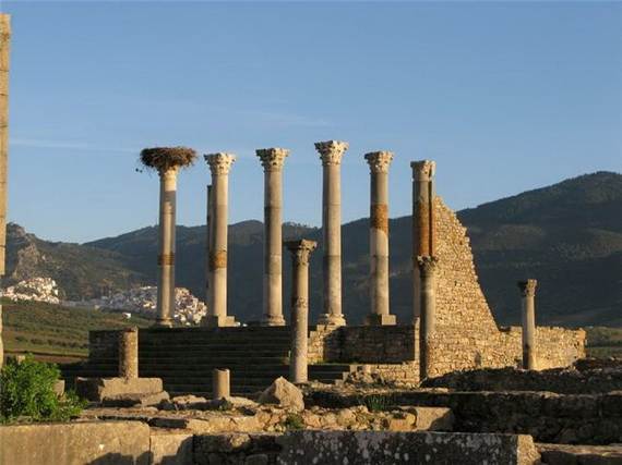 Archaeological Site of Volubilis (Arabic, Walili) is an ancient Roman Empire outpost that once served as the capital of Mauritania in the 3rd century BC and was graced with many fine buildings. Located in Morocco near the city of Meknes (33 kilometers) between Fez and Rabat in the Middle Atlas, in a fertile agricultural area, and was graced with many fine buildings. The fertile land of the province produced was the center of olive oil production which was exported to Rome, and its wealthier classes built lavish courtyard houses with intricate floor mosaics. The nearest town is Moulay Idriss Zerhoun named after the great grandson of the Prophet Muhammad an important Islamic site in Maroc. Volubilis features the best preserved Berber ruins and one of the largest ancient ruins in Africa.