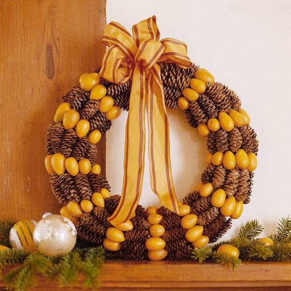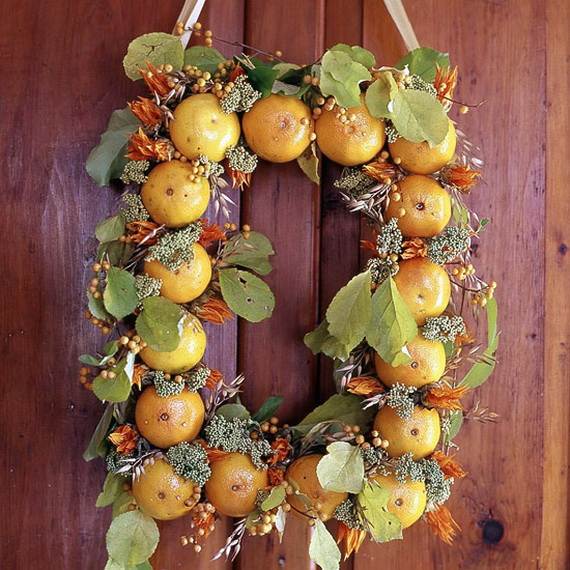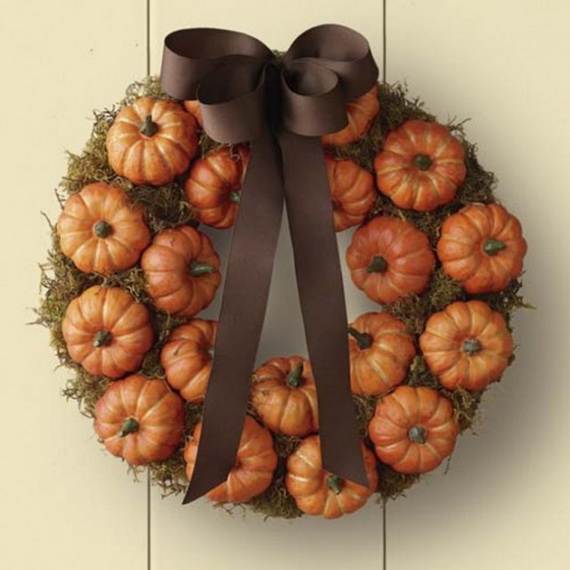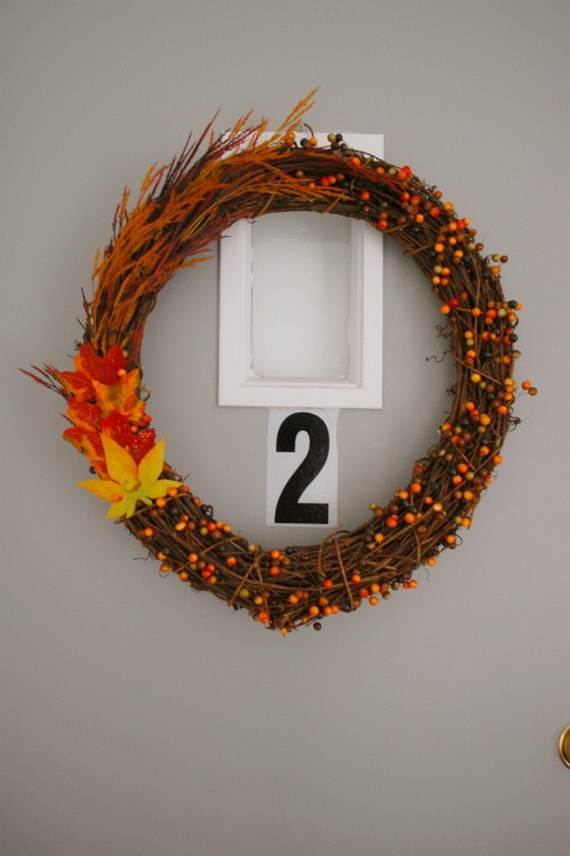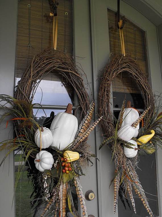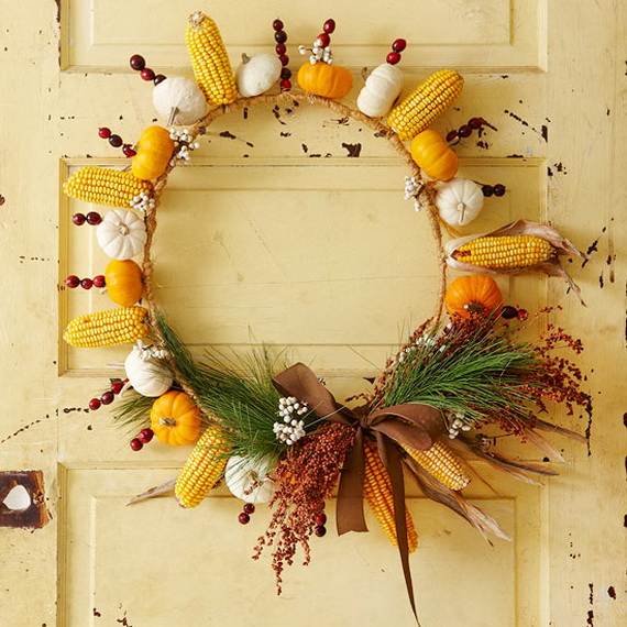 Man people don’t have an idea how wreaths can look so elegant over a mantel. They are either hanged above or actually let it rest on it or on a brick. Thanksgiving Wreaths on brick or over a mantle transforms- either way- it into a focal point. Wreaths on brick or over a mantle can be something more permanent as a peace of décor all year round, or just for a certain occasion. Thanksgiving Wreath on this specific place with the verities of the bright, cheerful colors of the season gives us the chance to make it a permanent hanger. You can hang different-Fall-colored wreaths using the beautifully colored Mother Nature element to update the look.