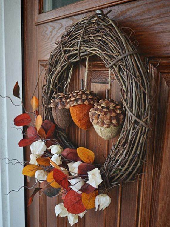 Beautiful Cool Fall & Thanksgiving Wreath can be made from almost anything and most of them are natural materials that you can use, like rag wreaths, leaves, pinecones and nuts, floral and flower wreaths, paper, heart, and even candy wreaths you don’t have to spend a lot of money to make one at home.