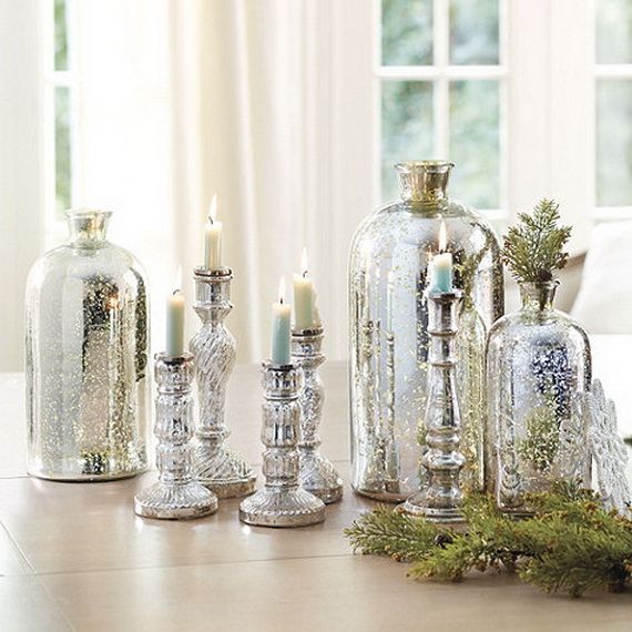 Mercury Glass look very similar to silver an here is the secret for their beauty. Mercury glass is creative decorative items used around the house especially for special occasions. It’s made of a double blown glass wall with mercury inside between the layers then sealed. Mercury glasses are made of glass and since they are transparent they match any décor. Mercury glasses are great for any room of the house, even the bathroom could use a few eye-catching features, and mercury glasses are traditional decorations perfect for the coming holidays. Mercury glass can be used to make lots of different items…vases, candle holders chandeliers, pendant lamps and lighting fixtures and many more beautiful for any type of home décor and featuring a timeless charm. Here we posted Beautiful Mercury Glass Decorations For Your Coming Holidays from pinterest ….No matter what your occasion or application, the Mystique of Mercury Glass is sure to leave a shining impression on your guests, family and friends.