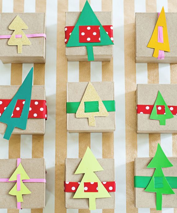 These little paper trees Santa Claus and gifts are very easy to do. You can accommodate the size of the trees, so you can fill them with fun treats; joypops, candy, stickers or any little toys that your kids love. This Christmas tree advent calendar can be displayed almost anywhere, on a mantle, or just on a shelf, it’s the cutest little modern forest.