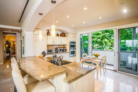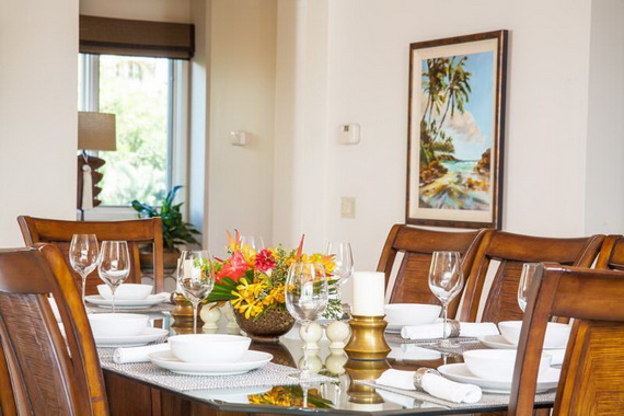 There are two dining rooms one indoor and the other outdoor. The indoor glass dining has table which seats eight guests and three bar stools at a counter facing the kitchen. About the outdoor dining, there is comfortable lounging area on the outdoor private terrace, from which you may enjoy a panoramic ocean view. It has table can seat six guests.