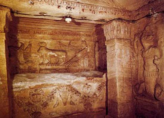 As Egypt is famous for its Pyramids which are tombs for the dead . The Catacombs of Kom el Shoqafa are an underground city for the dead and one of the most inspired monuments of Alexandrian funerary architecture.