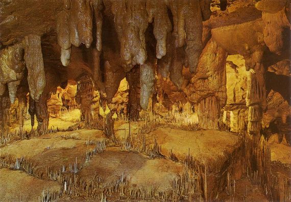 The discovery in 1868 was by chance by the hunter Modesto Cubillas Perez, caused by a nearby tree falling and disturbing the fallen rocks. His dog got stuck in a crevice and the owner, helping the dog to get out, found a grassy entrance leading into the ground.