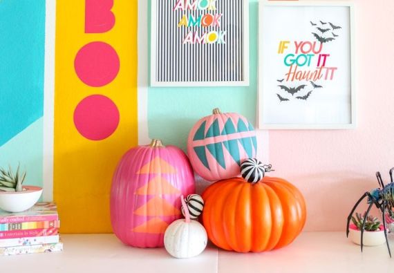 Pumpkins are favorite element for fall, Halloween and Thanksgiving decor. Forget moody and gloomy ones and scary jack-o-lanterns. This year make your special different bold colors. Add to your holiday décor DIY pumpkins, cool and quirky quotes with letter stickers and paint them in cheerful various fun colors for a unique look. Go for watercolors, rainbow-colored pumpkins, color block pumpkins, gradient, Ombre, beads, sequins, and glitter, the result will be amazing! For beautiful no-carve pumpkin ideas, you can paint them by dipping, painting, stencil and even using sticks to create whimsical and colorful pumpkins. Try those trendy decor ideas like or everything else that comes to your mind will make them look ultimate.