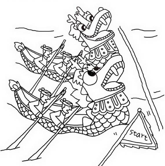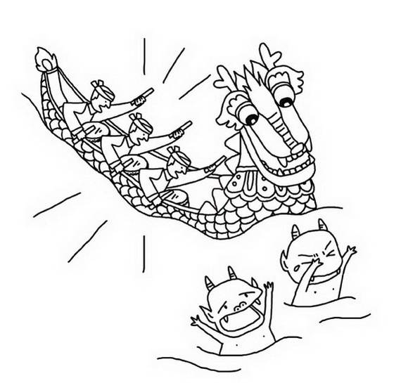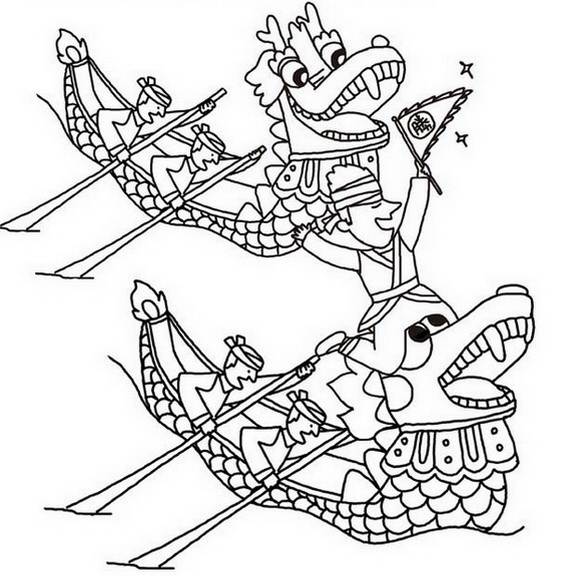 Dragon Boat Festival (Duanwu Festival, Duānwǔ Jié, Double Fifth, Tuen Ng Jit) is a Chinese traditional and statutory holiday, one of three major festivals in China(Autumn Moon/ Chinese New Year/ Dragon Boat). Dragon Boat Festival this year falls on June 23-2012. The Dragon Boat Festival is celebrated on the 5th day of the 5th lunar month of the Chinese calendar. The holiday in China starts from June 22 to 24, 2012. Main customs of the celebration include eating the sticky-rice balls wrapped in bamboo leaves(zongzi), hanging calamus, Artemsia argyi, smoked herb and Angelica dahurica, drinking Realgar wine (xionghuangjiu), and racing dragon boats which is the main highlight all is now popular all over the world. Hence for the Chinese, dragons are strong, powerful creatures, they have been the symbols of benevolence and protection. Chinese Dragon Boat Festival was chosen into the UNESCO World Non-Material Cultural Heritage List to complete the celebration we have chosen some Dragon Boat Festival Coloring Pages for kids and all ages for you to print out. It is a wonderful activity that encourages creation and mind development. So be creative with these free Chinese drawings,which can be used for many purpose.