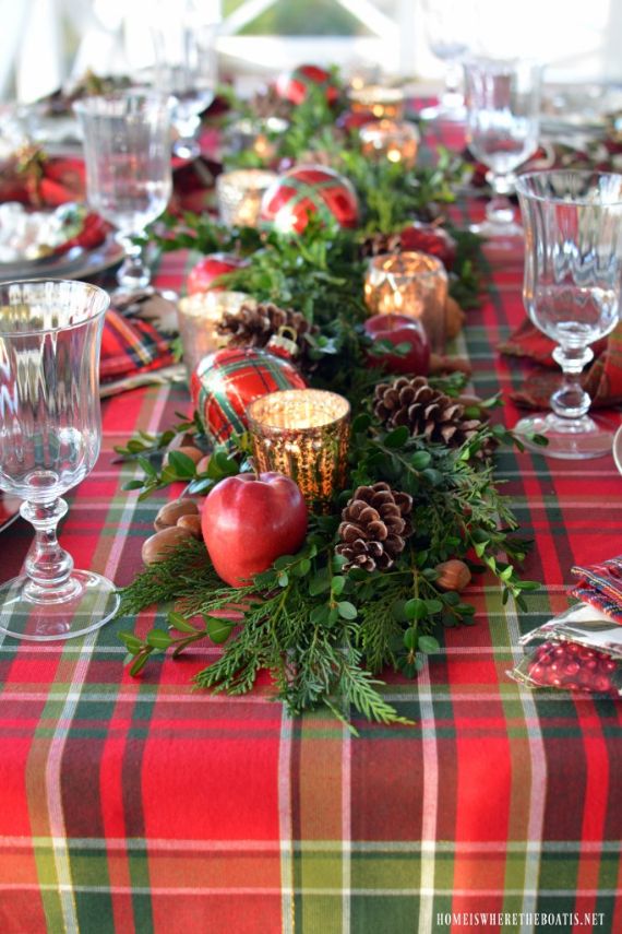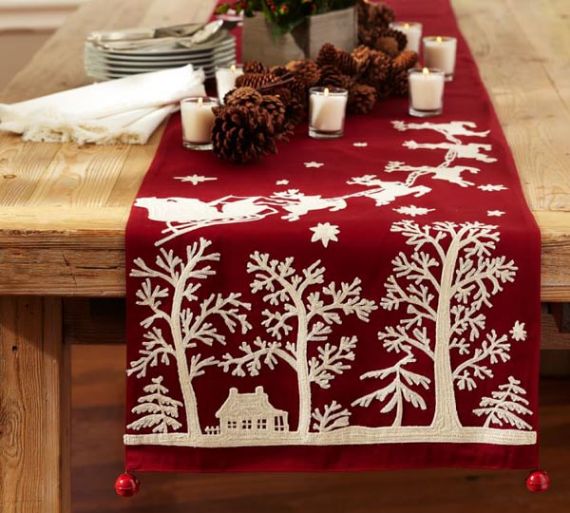 The table runners work well straight onto a bare table or on top of the tablecloth alongside the Christmas tablecloth. It also serves as eye catching accent pieces while being a base of the centerpiece and candlesticks. Personally, I love table runners because they create a feast for the eyes during a season, spreading the holiday mood on a select portion of the table and coordinating other decor based on the runner style and color. Thus, move away from a formal Christmas table décor with Christmas printed table cloth that create a busy space on the table and enjoy using long table runners and placemats instead. You even can extend the table runners way beyond the dining room. A Christmas garland, Christmas lights, branches of greenery or a Christmas wreath when arranged in the center or along the table runner with or without varying heights of candles will give style a beautiful Christmas table centerpiece. The net result is creating a runner in a simple way to add a totally different effect.