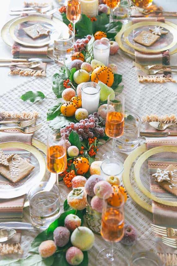 Quick, easy, beautiful and pleasing to the eyes; pieces of the outdoors in your decorating, especially at Christmas. To creative a garland Christmas table runner you need living greenery, fruits, branches, flowers, you may add candles to spice it up a little bit. It’s casual and cozy to feel sharing dinner with nature.