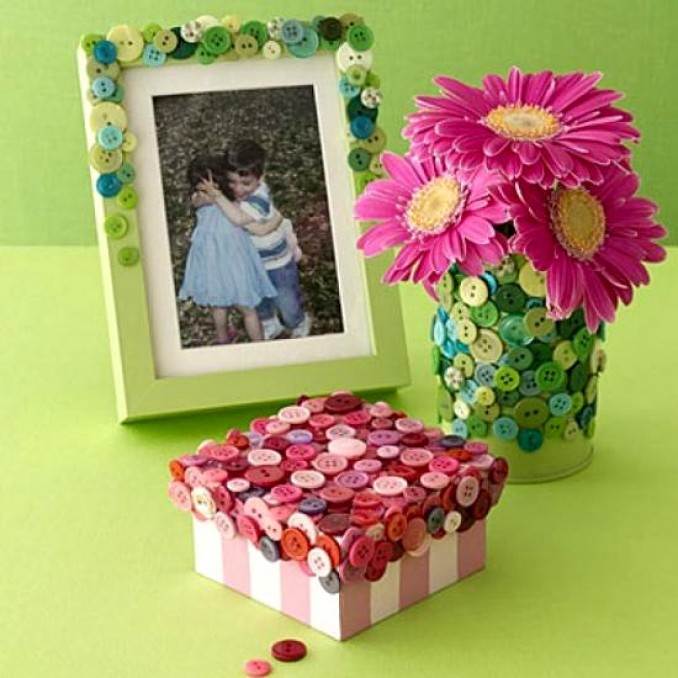 Buttons are an inexpensive craft; you can make any creation with them. Some of the button crafts for kids projects are easy to make, and there are a few more difficult. Most of the projects are definitely easy, you may want to make yourself …all you need is just little imagination and creativity and you would be surprised at what you can use to organize your life.