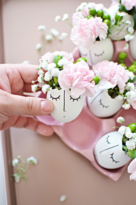 Simple eggshell flower arrangements