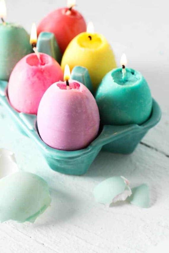 Eggshell-shaped candles;