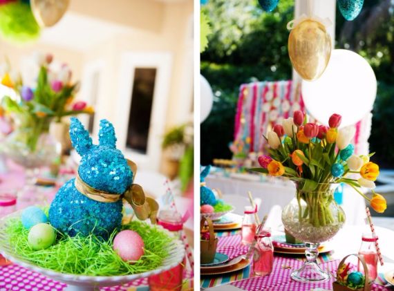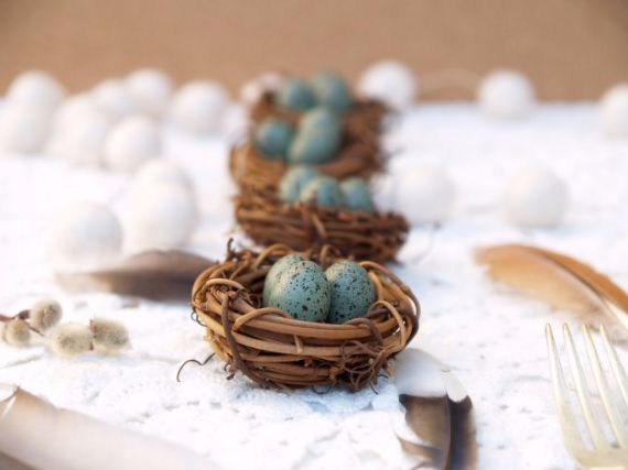 There are a wide variety of decorations using beside Easter egg decorations ; ideas with displaying fresh flowers are the simplest one, green grass, moss, small branches and images that are inspired by Spring and Easter decorating themes, give a the dining table a unique look yet meaningful. Additionally we can also add traditional and whimsical elements like Easter bunny, hen and chicken figurines, combined together, floral napkin rings and colorful blue and white Easter’s eggs to create wonderful Easter table centerpieces that look gorgeous and make attractive holiday table decorations whether you have little kids or not. Unleash your creative and help decorate your home using simple and cheery table setting for spring without obstructing the view at the table by using some of these ideas to inspire you. Blue and white Easter egg decorating and making Easter blue and white decorations are fun activities that bring joy. One of the simplest Easter table decorating ideas is to add gorgeous spring displays with blue and white colored eggs or without them such as short spring flowers, small blooming tree branches as these will add a seasonal mood to your spring table décor. Colorful accessories in blue and white colors like painted eggs, egg cups, and other spring elements can offset the tablecloth. Traditional Easter bunnies, hens and chicken figurines, bright blue and white designed ribbons, green moss or grass, small candles and many innovative creatively decorated Easter eggs adds unexpected and interesting cheerful and festive Easter table decor. Candies, chocolate and fresh fruits in bright yellow, blue and white colors can be used for spring holiday table decorating also.
