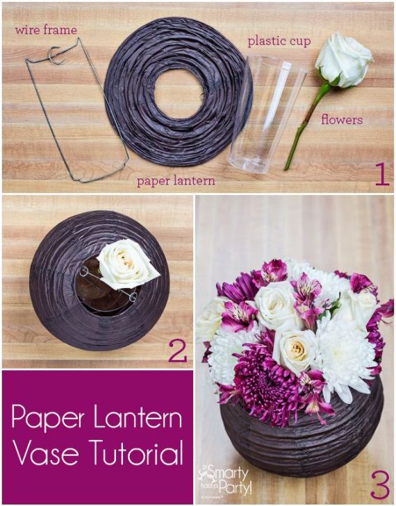 Decorating with paper lanterns indoors adds a festive air to almost any occasion by using your old Paper lanterns into vases and bowls. The paper lanterns can be turned into beautiful vases that personalize home interiors and outdoor with colorful and attractive home decoration ideas. Extra size lanterns can be recycled to create a flower arrangement for the floor and thus give a different air to that corner that you just do not like. It cannot be simpler making vases and bowls while recycling and the result is surprising. Get inspired by these amazing new look designs and think how you can recycle lanterns for crafts at home. Decorating them is fun as you do not need much … and you will already have them into very ornate vases and art.
