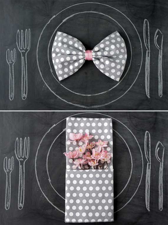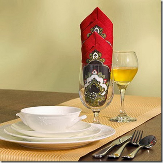 Who doesn’t often invite guests at home? Nearly all of us especially on holidays or special occasions when gathering the family or friends are a must. Here, your home must impress your guests so as your table. An elegant looking table and elegant as well as enhance the dining experience for holiday’s dinner will make a great impression for your guests even before they have tasted the food. Beautifully folded napkins would definitely help you to have a great atmosphere on the table. Folded napkins have become an origami art. Since centuries square and triangle folded napkins have been used for decorating tables and today the Serviettenfalttechnik is and still a tradition in the restaurants, but have been transferred to the our tables too. There are many napkin folding techniques that are folded in quirky shapes and designs from simple ones to the more complicated fancy folds adding a stylish touch to the table settings. Take a look at the following ideas that in fact you just can’t forget to place one of these on your table so go and try yourself. Image source : pinterest.com.