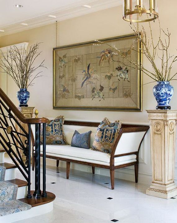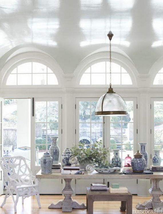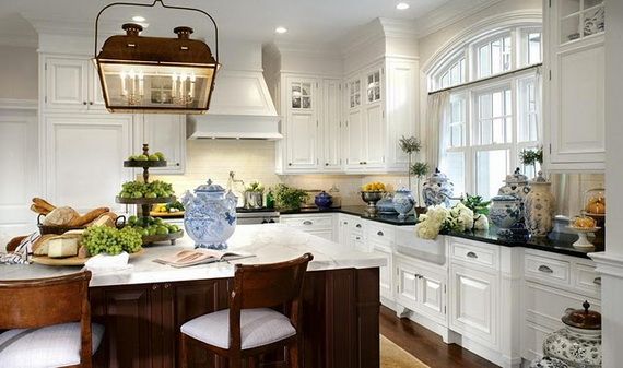 DECORATING WITH BLUE AND WHITE is used in Coastal, city sleek, farmhouse, country home, elegant traditional, old world, French, ….it always works in all its many variations!! Amazing blue and white! Here are the features that I’ve found. I’m sure there will be more, and as there are I’m sure I’ll post on the classic blue and white scheme again.