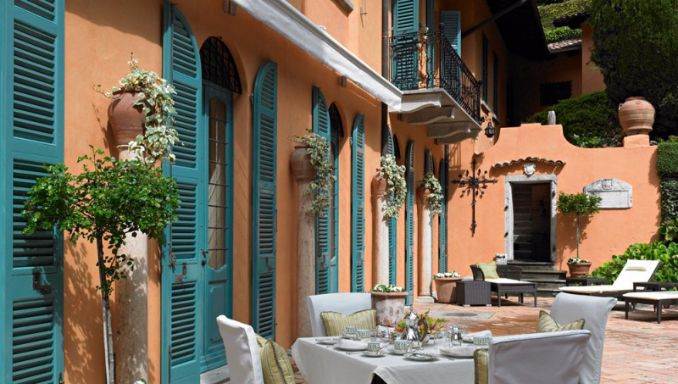 Absolutely private, the villa is exclusively accessed by a 3 minute boat ride which is the only means of arriving to Villa La Cassinella. Guests arrive to the villa via stone steps leading through a formal 30,000 sqm garden with fountain pool, and up the short flight of stairs into the villa.