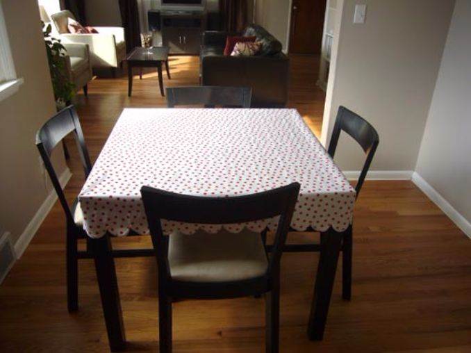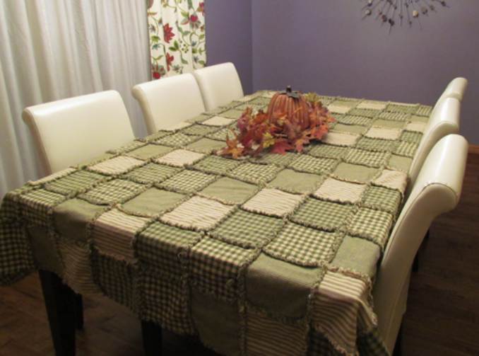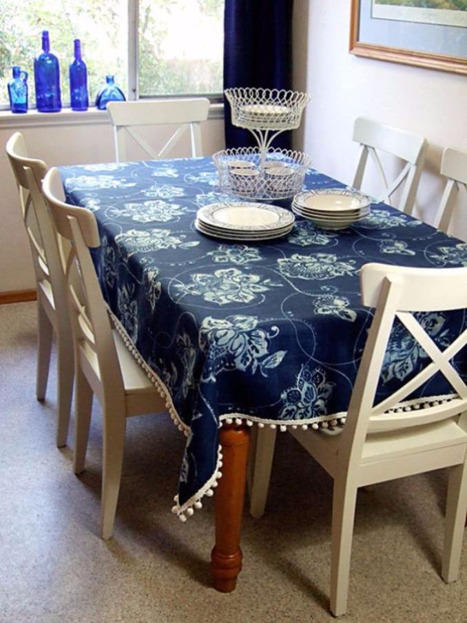 Finally cut the terminals of the cloth in a shape of your own choice. The shape might be a rectangle or square or oval. You will need a scissors to do this. You can make curves surround the craft by thread sewing. By this way, you will obtain a luxury tablecloth.
