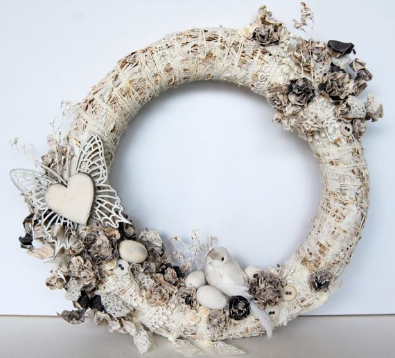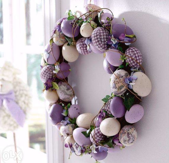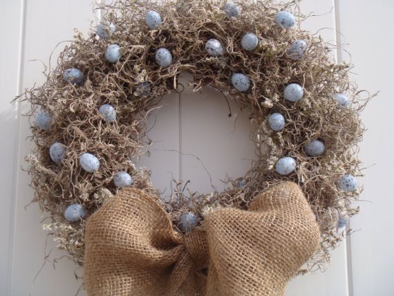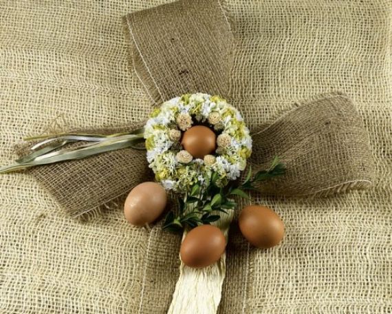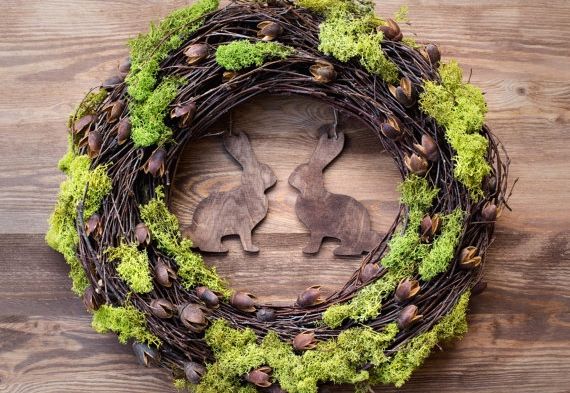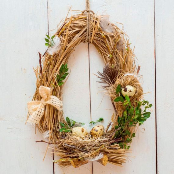 With bunches of hay make an Easter wreath that will look very stylish. This superbly rustic piece became back to life to flaunt with its beauty. Within the raw texture of hay add the necessary materials for creativity to display the bright inflorescences, juicy ocher colors, colored, monochromatic decorative eggs in a color of your choice on this Easter wreath base. Be creative and have fun giving it to your loved ones