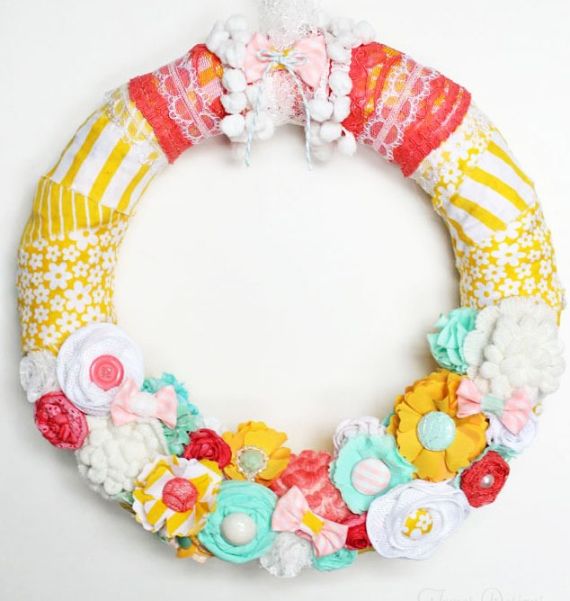Easter Felt wreath is a little different from made especially to be used indoors for a dramatic effect. Felt is soft construction so feel free to hang it within reach of the kids. It is an inexpensive Easter craft material, that you can let your child be involved helping you to design your own pretty Easter wreath. Use soft, colorful felt to make an Easter wreath. Add flowers, bunnies and more and hang it with a piece of vintage lace. Easter Felt wreath could be use on your table with a lovely candle in the middle… an alternative to a hanged door wreath.