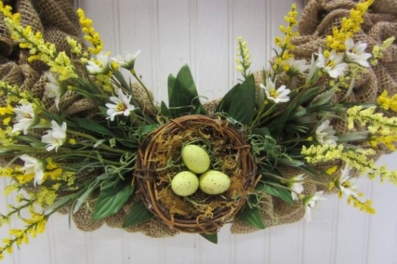 A full, layered burlap Easter wreath have a rustic look and embellish to suit the Easter theme. They favorite for many décor designers because they are more natural, and perfect for many occasions.