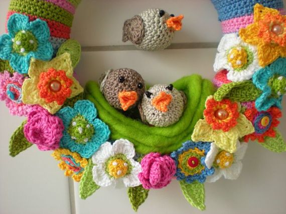 Because of their bright vibrant colors reminiscent of a spring meadow, Easter and Spring wreaths became popular to decorate front doors and other interior areas of their home. Crochet Easter Wreath and Amigurumi Easter Wreath are ideal decorative craft projects for any Easter and summer season. They make the cutest decoration for the holiday. Floral crochet inspiration, eggs, birds, butterflies and other amigurumi appliques are such sweet patterns to add to the Easter wreath. Therefore, please enjoy these wonderful, joyous crochet Easter wreaths.
