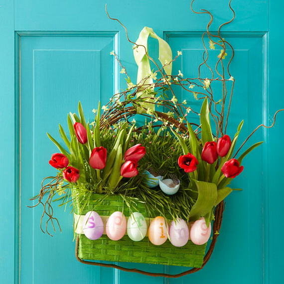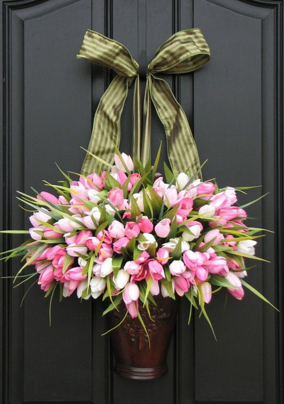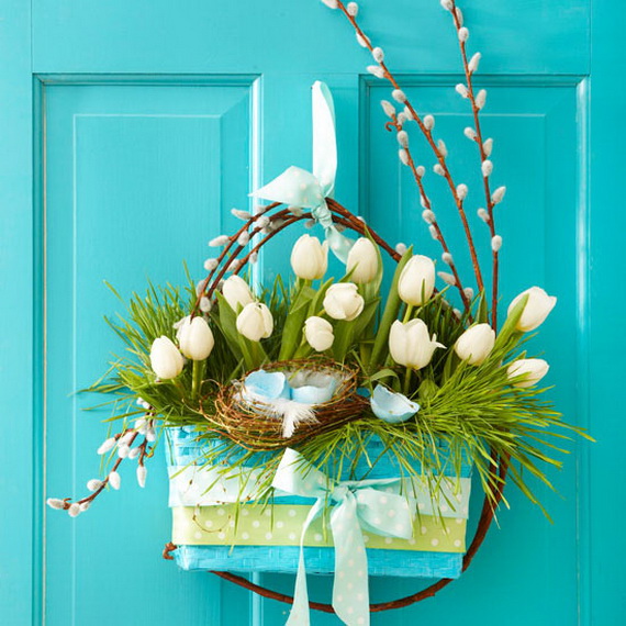 Spring has almost arrived and Easter is on its way too. For those two lovely occasions most of us think how to welcome their coming. Mostly we begin with decorating our front door with pretty spring and Easter wreaths and beautiful hanging arrangements of Pastel colors and springtime elements for spring and Easter celebrations. Such things make great additions to your front door scheme. Outdoor Easter decorations aren’t nearly as popular as outdoor activities as Halloween, thanksgiving and Christmas counterparts on which both are, but displaying them in the yard is a great way to kick off the spring season. For Easter and Spring here is a roundup of Door Decorations on personalization mall and save-on-crafts to gain ideas for your own Door Decorations.