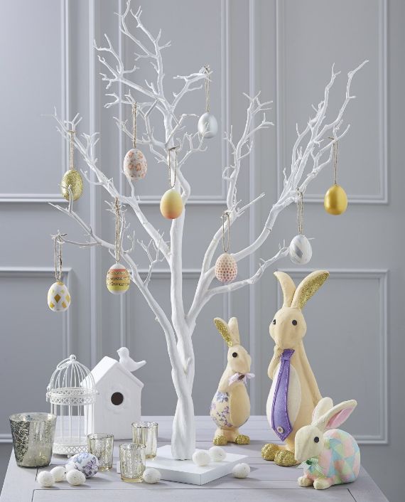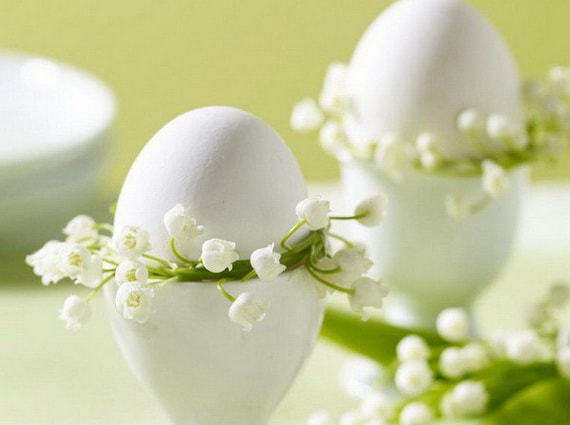 Easter figurines Various figurines of chickens, bunnies and hedgehogs, are another symbol of Easter placed along the table. Easter has many variations on its theme, they may be ceramic, figurines, wooden and glass but none are beautiful as hand-made or created Easter decorations as fabric or knitted ones. White angels will look perfect on a colored tablecloth. The size, appearance and combination of colors depend only on your imagination. All will help to support the festive decoration of the table.