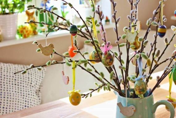 An Easter tree has been around for ages, looks like a bouquet of branches decorated with Easter paraphernalia, or decorated with Easter eggs, ribbons, homemade paper birds and flowers installed in a flower pot or in a vase. Making an Easter tree decorations with your own hands is an easy task. And the festive atmosphere is already in your home!