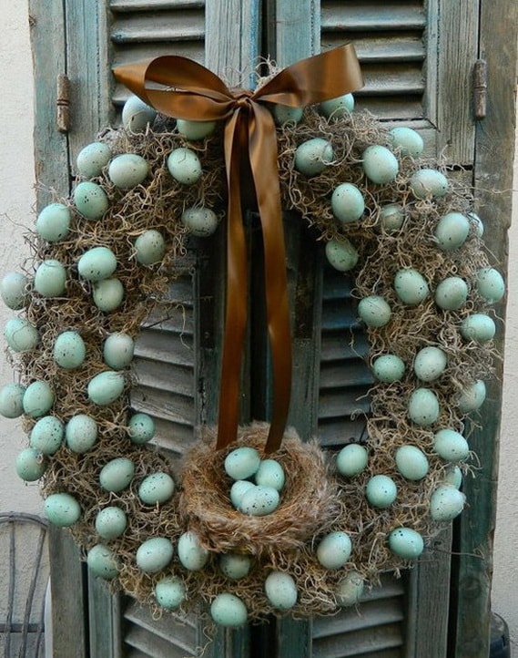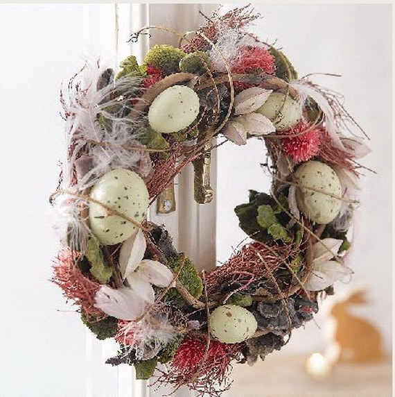 Easter wreaths on the door does not seem to be unusual. Such a decorative wreath is made not only from branches, twigs, eggs, ribbons, spring flowers, other symbols of Easter such as rabbit figurines, but also using small decorative crafts for a maximum theme and great mood.