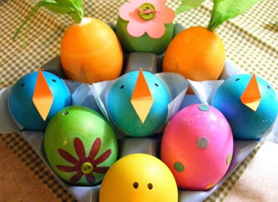 Eggs and chicks are the traditional symbols of new life at Easter. Chicken eggs are painted in different colors and decorated with various techniques and motifs. Since painted eggs are considered one of the main symbols of the Easter holiday many special egg dyes or applique; stickers, Easter pattern, durable wood, foam products and decoupage technique are used on blank egg-shaped as a DIY home decoration for Easter. Also, Easter egg decorating ideas with available many painting techniques are used to do decorate eggs for Easter day eg.….Pysanka, krashanka, dryapanki -to do egg decorating using wax resist for Easter- beside these techniques there are also many techniques for decorating eggs with appliques.
