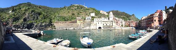 Vernazza has the prettiest tiny harbor on the Italian Riviera surrounded by colorful typical Ligurian pastel houses and the charming piazza is lined with good restaurants and bars all combined with the stunning colour of the sea and boats all contribute to the harbor’s stunning beauty.