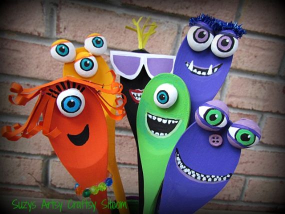 Monsters and Halloween go hand in hand. On the sense, we offer some silly Halloween crafts that kids will really enjoy. Spoon monsters made of either plastic or wooden spoons. This craft opposes scary influence of crafts, simply because Halloween is for fun.