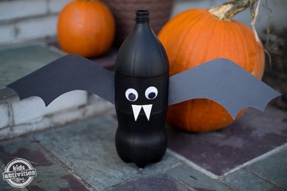 These bats are perfect projects for an adorable displayed on the front walkway. Fun and easy recycling craft to make a crafty masterpiece by children using Soda Bottle to make adorable Halloween bat display.