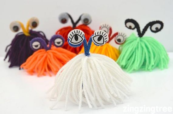 Make Funny Yarn Monsters by rolling bright colorful yarn into a fork. This is such an enjoyable little critters crafts for Halloween to enjoy. From start to finish a craft made with children’s hands they will laugh all the way.
